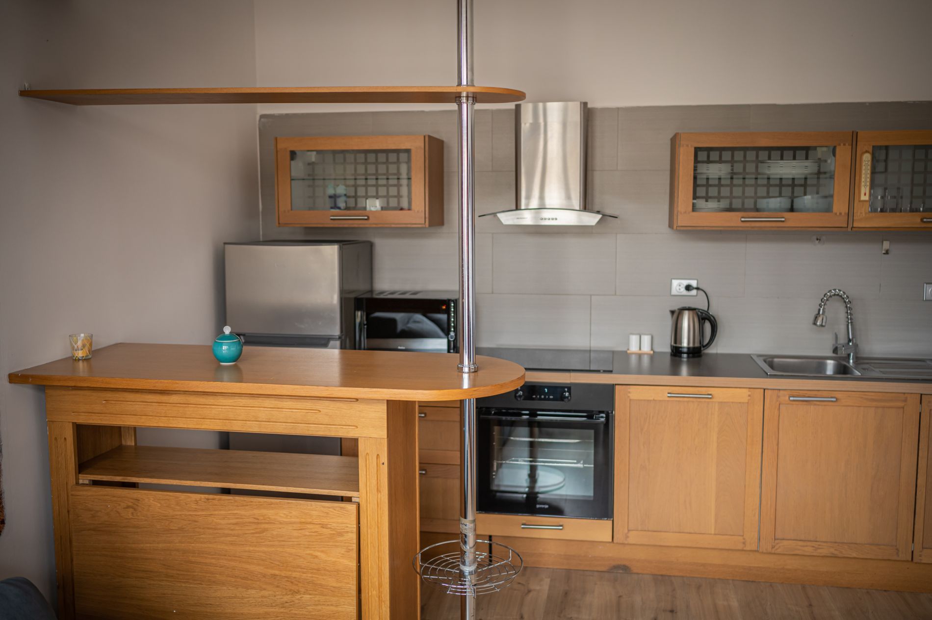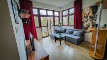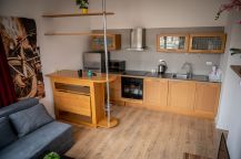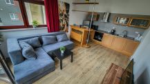Apartament znajduje sie na 1 piętrze, składa sie z przedpokoju , łazienki, sypialni i pokoju z aneksem kuchennym w pełni wyposażonym.